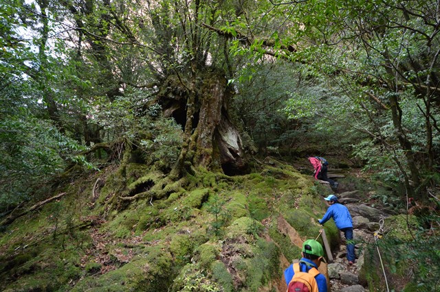 楠川歩道を往復となります。登山道入口から楠川歩道を登り、苔むす森(通称もののけの森)、辻峠から太鼓岩、同じ楠川歩道を下ります。帰りに二代大杉をまわり登山口へ。苔の世界を心ゆくまで楽しむことがでる『もののけ姫ファン』にお薦めのトレッキングです。