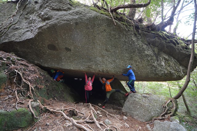 日が昇った頃に登山道をスタートし、贅沢に早朝の誰もいない静寂の森の中で朝食を食べ、晴れれば最高の展望で知られる太鼓岩でのんびり休憩、登山道には江戸時代に伐採された切り株や多くの二代杉に逢えるコース。